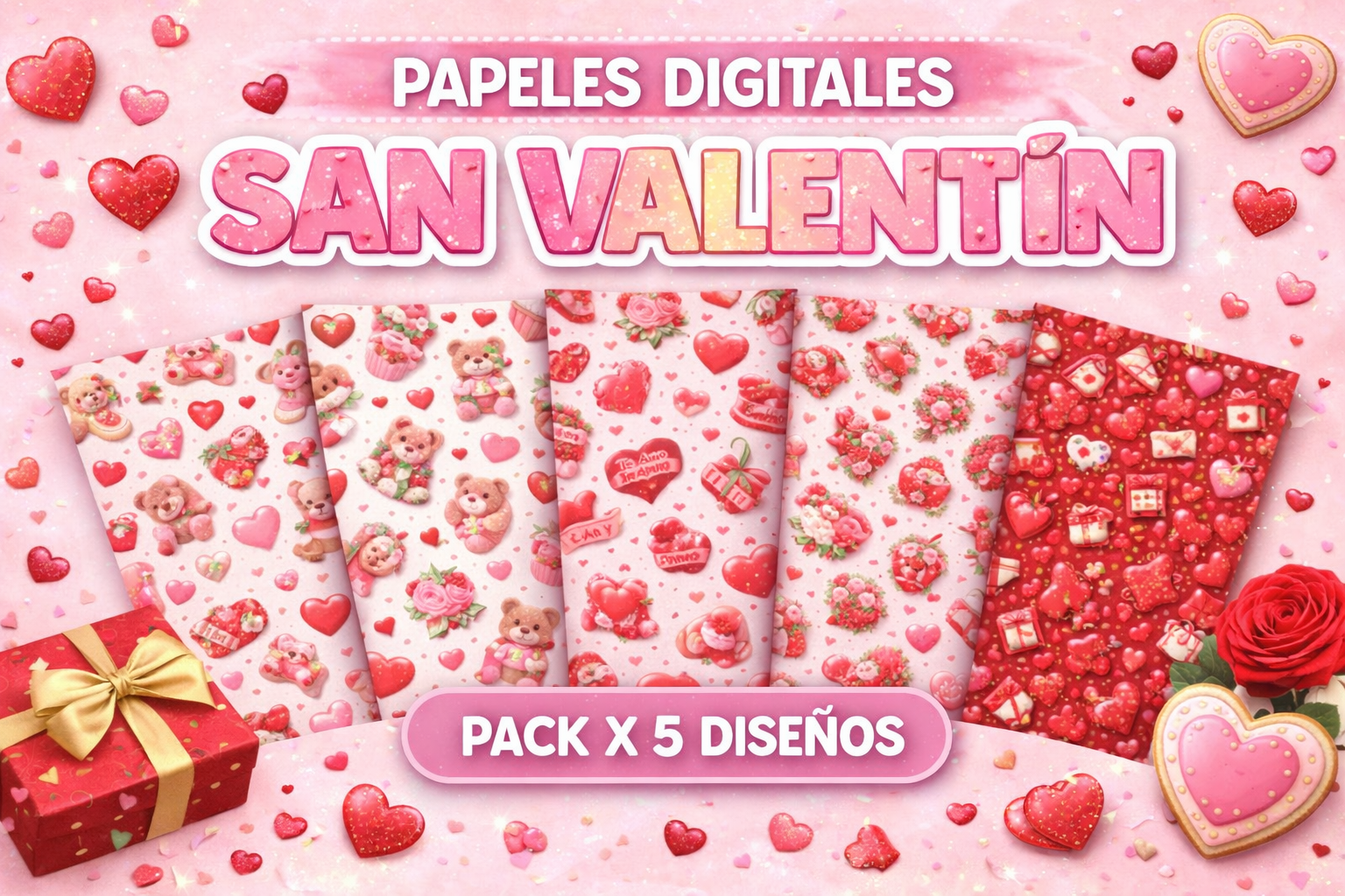 Pack x 5 diseños papeles digitales