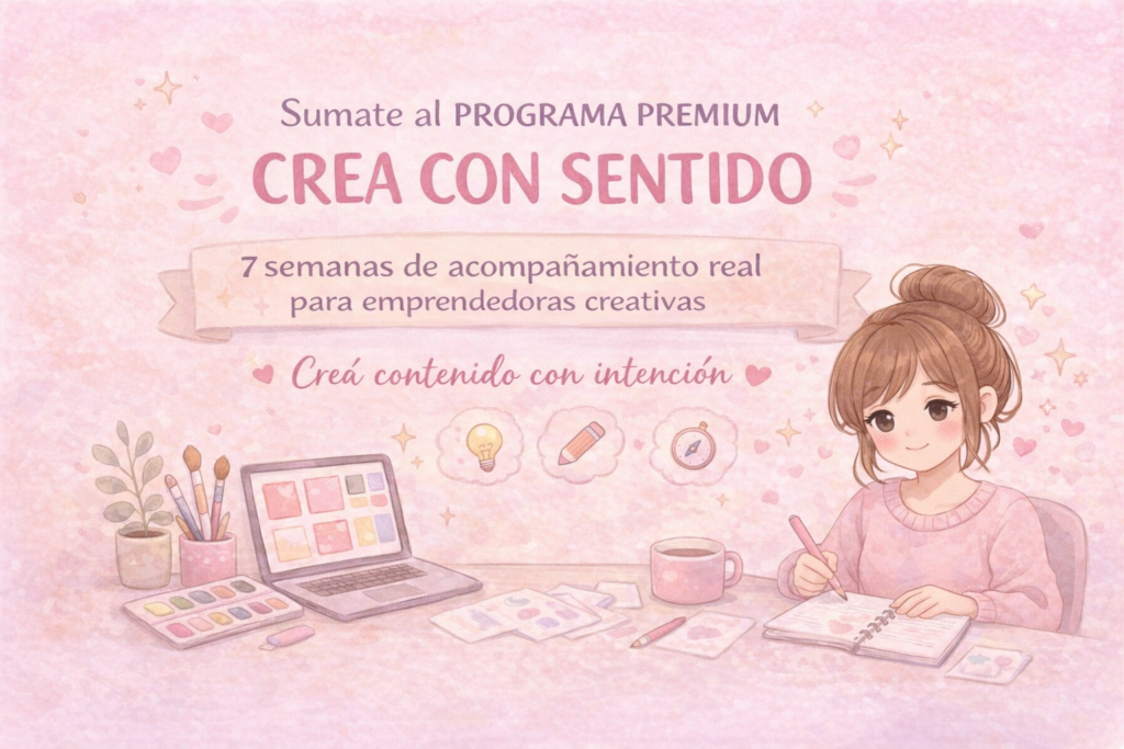 CREA CON SENTIDO es mucho más que un programa de contenido. Es una DECISIÓN. QUIERO ENTRAR AL PROGRAMA Esto no es para todas.Es para emprendedoras creativas que:ya saben hacer cosas lindasya publicaronya probaron “ser constantes”y aun así sienten que algo no encajaSi hoy crear contenido:te pesate incomodate hace dudar de tu proyectono es porque no sepas qué hacer.Es porque estás creando desde un lugar que no sos. El problema no es el contenidoEl problema es crear:desde la exigenciadesde lo que “debería funcionar”desde una versión tuya que no sosY eso, tarde o temprano, se paga:en energía, en motivación o en abandono. CREA CON SENTIDO existe por una razónNo para que publiques más. No para que vendas forzando.Sino para que puedas:volver a habitar tu proyectocomunicar sin actuarconstruir un mensaje que no te traicionePorque cuando el contenido nace del sentido, todo lo demás se ordena. Qué es CREA CON SENTIDOUn programa de acompañamiento para emprendedoras creativas que ya no quieren improvisar pero tampoco quieren disfrazarse para vender.Acá no trabajamos:✖ fórmulas✖ tendencias✖ personajes de marcaTrabajamos:✔ identidad✔ coherencia✔ direcciónAntes del contenido. Antes de Instagram. Antes de vender. Qué cambia cuando entrásNo prometo likes. No prometo ventas mágicas.Lo que sí pasa es esto:dejás de forzartedejás de copiardejás de sentirte perdida cada vez que publicásY empezás a crear desde un lugar que podés sostener. No sigas creando desde un lugar que te desgasta.Si querés quedarte en tu proyecto, tenés que crear con sentido. ESTOY LISTA PARA AVANZAR!
